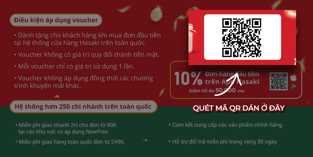 - Voucher chỉ áp dụng cho khách hàng khi mua đơn đầu tiên tại hệ thống cửa hàng Hasaki trên toàn quốc.