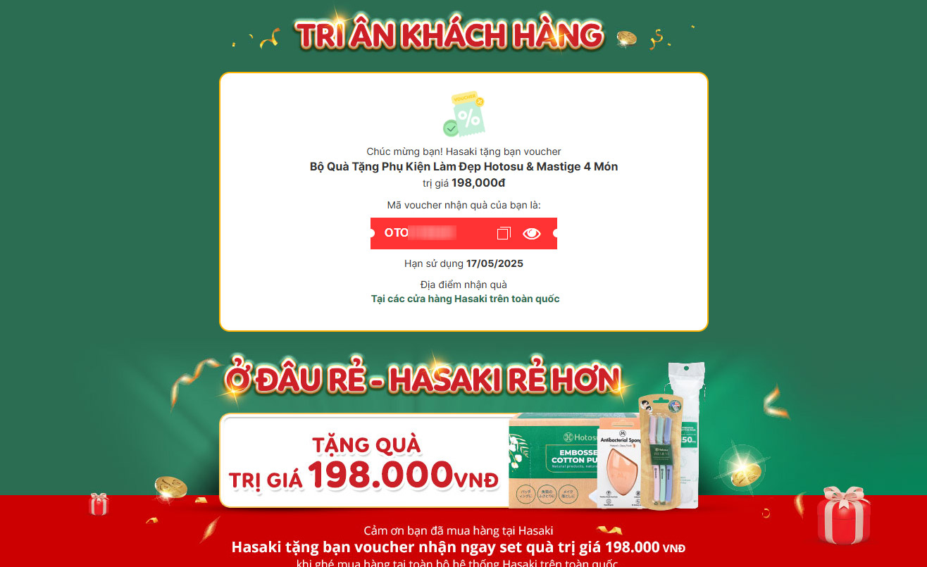 Bước 3: Nhận Quà Tặng Tri Ân Từ Hasaki