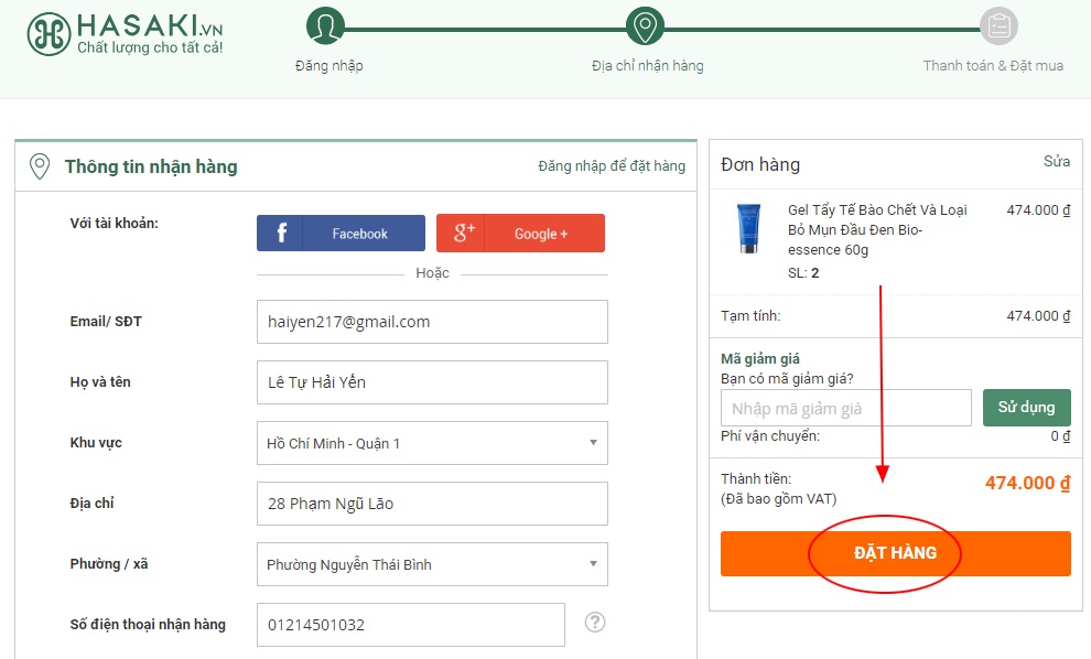 Quý khách có thể đặt hàng trực tuyến ở Website Hasaki.vn thông qua các bước đặt hàng cơ bản.