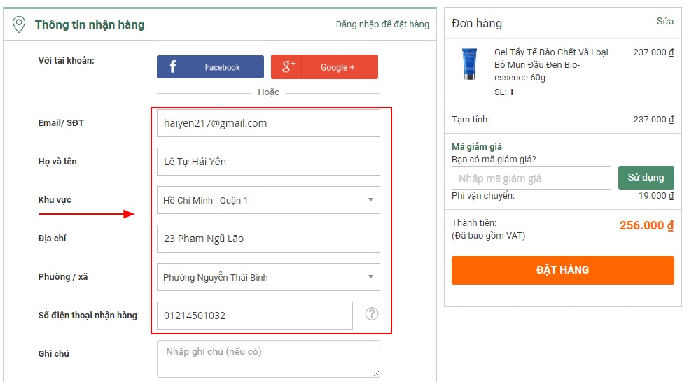 Quý khách có thể đặt hàng mà không cần đăng nhập nhưng quý khách lưu ý phải điền đầy đủ và chính xác về thông tin nhận hàng, đặc biệt là địa chỉ email và số điện thoại để Hasaki xác nhận đơn hàng.